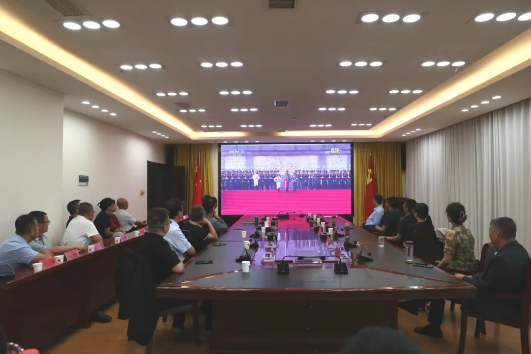 伴随着现场奏响欢乐的《迎宾进行曲》,党和国家领导人以及各国嘉宾出现在天安门城楼上,纪念中国人民抗日战争暨世界反法西斯战争胜利80周年大会随即拉开帷幕。屏幕前大家屏气凝神,全神贯注。认真观看空中护旗梯队、仪仗方队、陆军方队、海军方队、空军方队等依次通过天安门广场接受检阅,受阅部队那飒爽的英姿、整齐的步伐、先进的装备,壮观的场面让收看的党员干部无不赞叹。