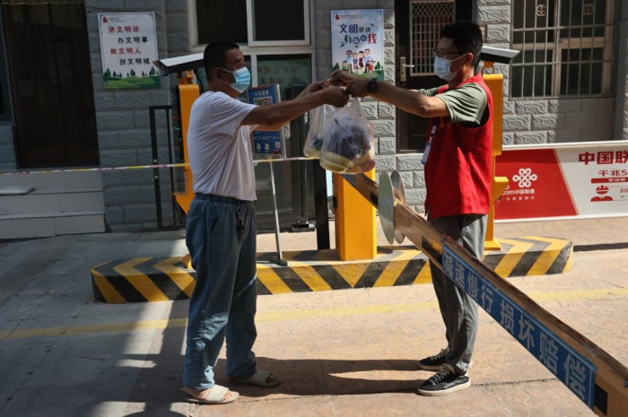 下沉在供电小区的刘鑫一天下来为群众送物资多趟,身上的衣服浸湿了一次又一次,“我是党员,应该第一时间挺身而出,不退缩、不畏惧,听从党组织的号召,为了群众的健康安全流点汗,值!”刘鑫擦擦头上的汗,又奔忙于小区门口与住户之间。